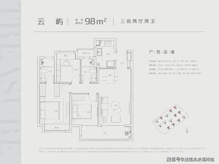 南向约9.6米超大面宽,双联观景阳台;主卧套房设计,步入式衣帽间;2个卫生间灵活方便;U型厨房操作动线流畅,增加空间实用性。