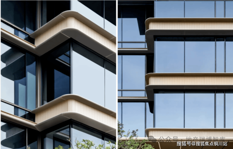 建筑立面的设计采用造价高、质感十足的“铜色金属板+浅色折叠陶板”,精心雕琢出协调统一的建筑形态,细致勾勒出建筑主体的挺拔姿态和稳重典雅的。