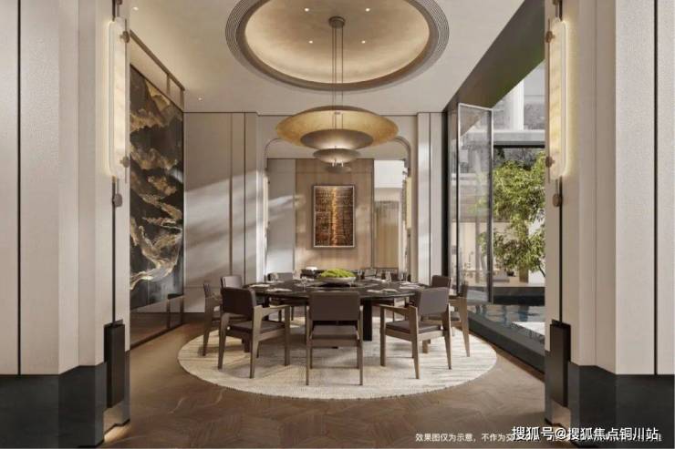 绕过归家大堂的奢石背景墙,一整面近9米高、270º采光的玻璃幕墙豁然出现,将整个中庭的景致无损引入。