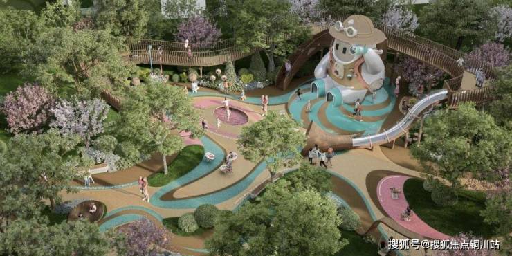 如「棠果乐园」中巨大的棠果造型滑梯及空中游廊,「大树剧场」中特意栽种的「记忆大树」,都是融入主题IP形象的表达。