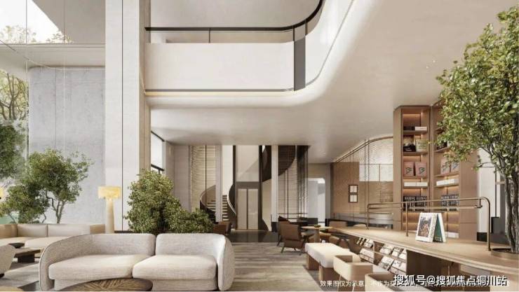 更惊艳的是,透过巨幅玻璃幕墙,从会所内便能看到下沉庭院中一棵高约12米的「生命之树」。