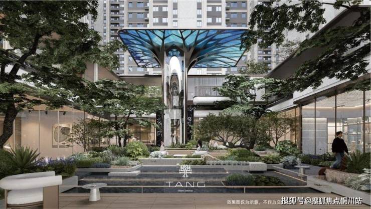 广场中央还特意栽种一棵标志性大树,这是金茂棠系产品标准的精神图腾,在绿荫下打造一个邻里社交聚点。