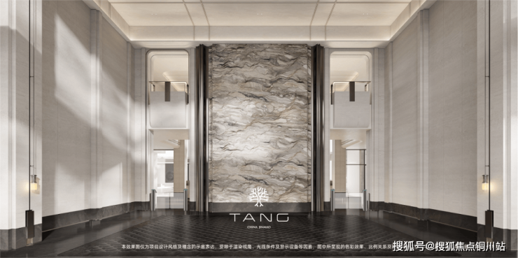 迎面是约8.2米×4.8米的超大奢石背景墙,其自然的水波纹理宛如凝固的汾河波涛,气势磅礴。