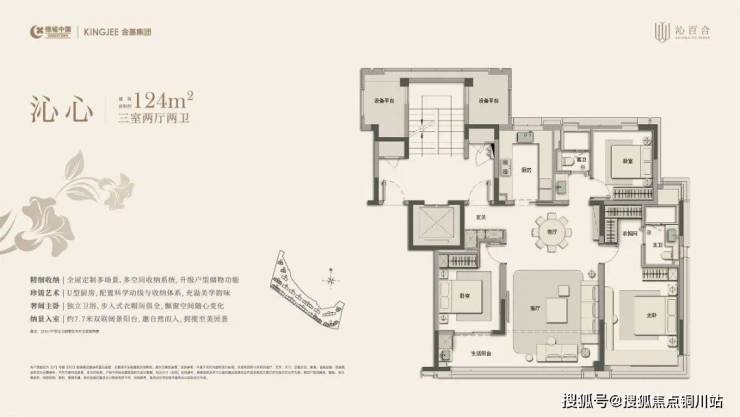 沁百合主力户型为建面约124-143㎡户型,以超高使用率打破空间边界,最大约7.7米南向双阳台以及LDKB一体化的设计,引江风与阳光入宴。标配“三恒两舒”科技系统,户式空气源热泵+毛细管顶棚辐射+户式全屋置换新风系统重新定义舒适。