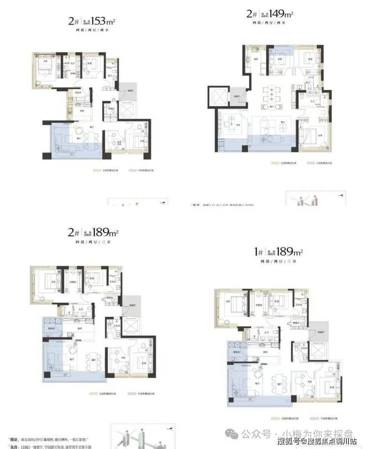该项目体量不大就一共三栋楼,一号楼28层低区153m²高区188平,二号楼45层低区153m²高区188,三号楼分两个单元总高28与32层面积段为146和153和188的。该小区产品面积段:146㎡、153㎡、190㎡。起步146的所以都是偏改善群体客户,户型图如下