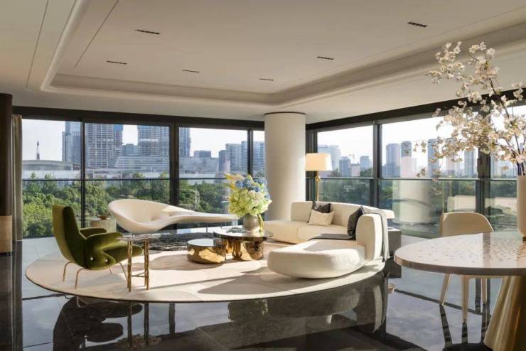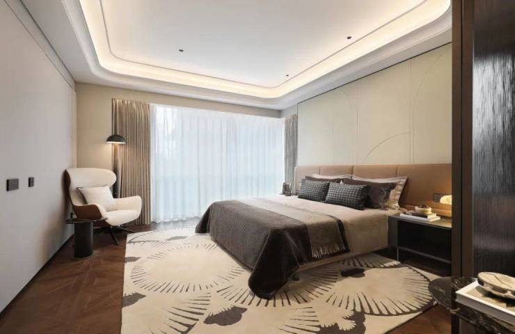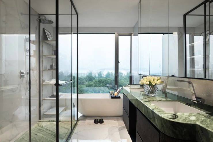 约40㎡行政级主卧不仅配置步入式衣帽间、梳妆台、独立卫浴,南北皆设计270°转角落地窗玻璃,采光毋庸置疑,风景更是盛呈于眼前。