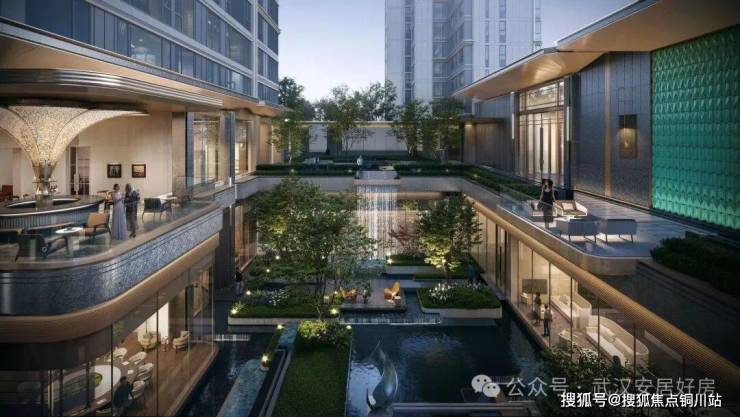 ○ 十景:鎏金之森、活力商业街区、艺术之境、生命之树、臻享会客、林荫花园、澈影水庭(中轴打造约200㎡中央泳池会客厅)