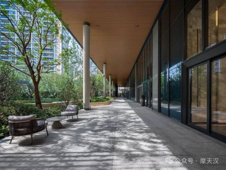 小区内9米高的风雨连廊通道,不论什么天气情况,业主在小区内都有一条安心的归家之路。