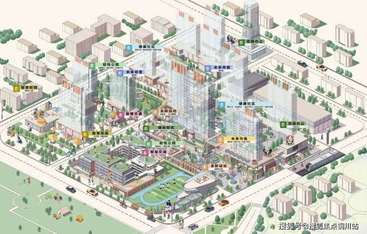 项目约52.5万方的体量,构建了“9大主题30模块”的无界生活场域,让街区、市集、公园、办公、邻里、运动、交通、校园、社区等交织在一起,自由渗透,形成了一个丰富且高效的“10分钟理想生活圈”。