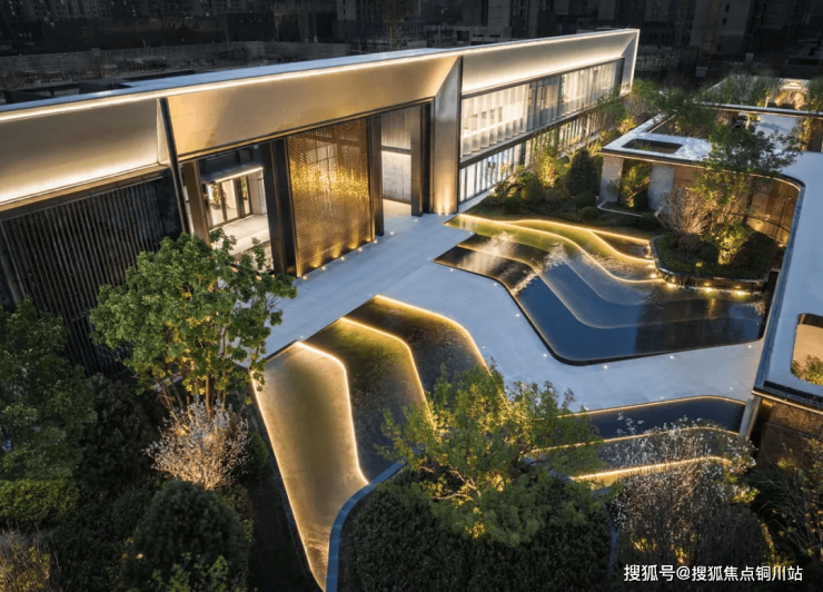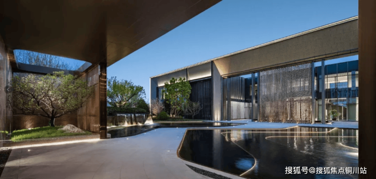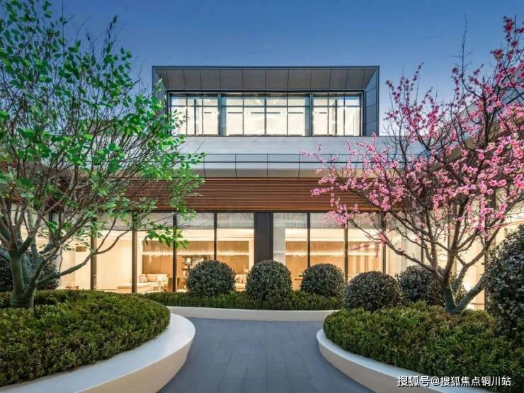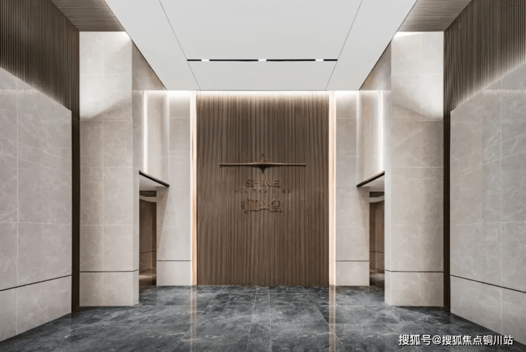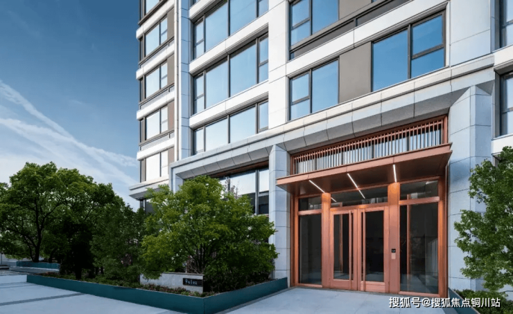 招商江山玺外立面,仿佛把玻璃盒子插进了金属框架,超窄的铝板线条+超大幅的玻璃立面,展现出了更加轻盈的气质。铝板边框由冷灰色+银灰色交错拼接,排列起来有一种钢琴键既视感。