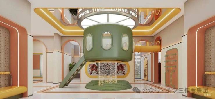 6#首层架空层打造儿童娱乐主题场域,规划趣味厨房、益智学习区、空中巴士、穿梭隧道、阅读区、绘画区、攀爬区等11大缤纷功能区。