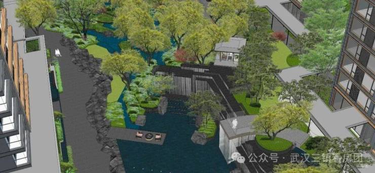 光谷壹号院依山势造园,汲取世界名园的设计灵感,以中国苏州拥翠山庄、美国波特兰凯勒喷泉公园、美国纽约泪滴公园为蓝本,精构台地,跌水成瀑。依托三山环抱、一湖潋滟的天然基底,构建“可居可游”的山地生活范本。
