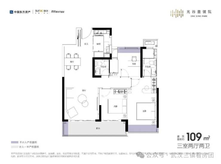 【建面约109㎡|三室两厅两卫】