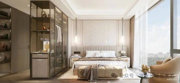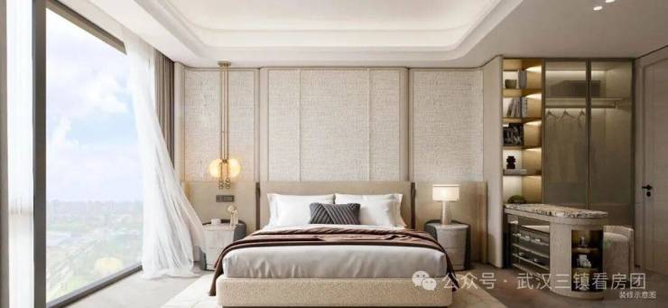 星级酒店式主卧套房,独立衣帽间与卫生间,雍贵奢华;全景落地窗,举目尽揽一城风景