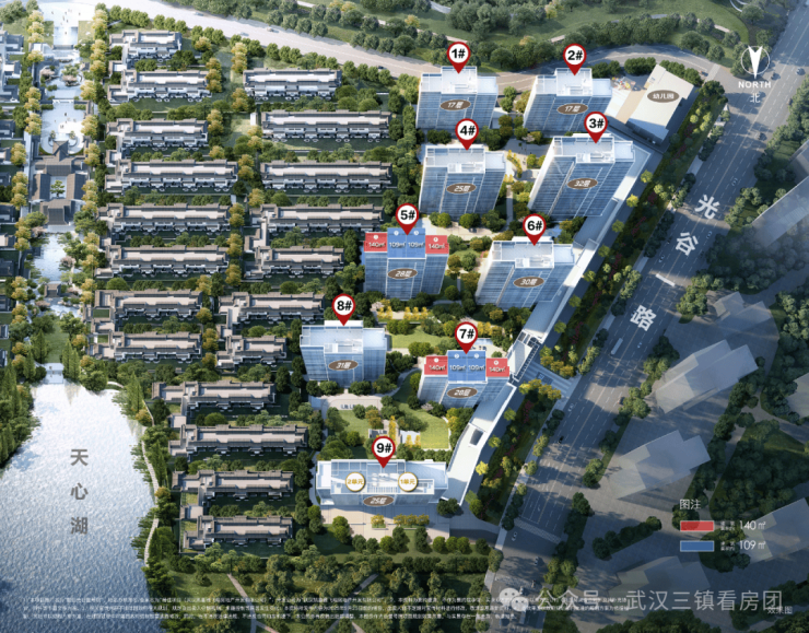 三座山林相依,一湖碧波荡漾,拥享约17.7万㎡私家原生山林湖泊(接近于龟山山体面积),畅享约5公里滨湖山林绿道(相当于1/2沙湖环湖绿道),是全国少有的齐聚山水资源、私有山湖的高阶人居。