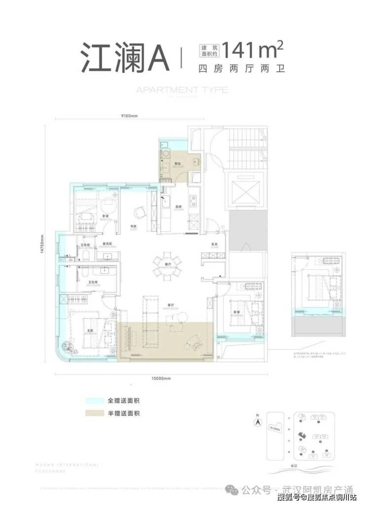 项目一期包含7栋住宅,北区1-2栋,南区3-7栋,其中5-6-7栋(主推169-189㎡)位于项目最南端,可以一线无遮挡看江。