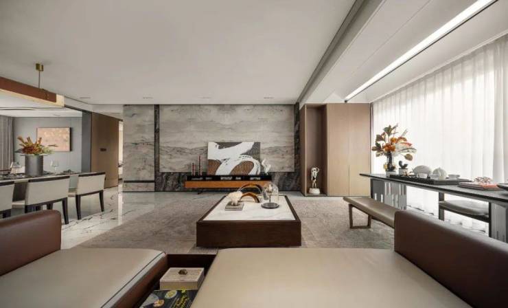约6.8米面宽,完全可以在大客厅里容纳开放式书房、品茗区、休闲区等功能,成为3+1房,且空间感、尺度感更强。