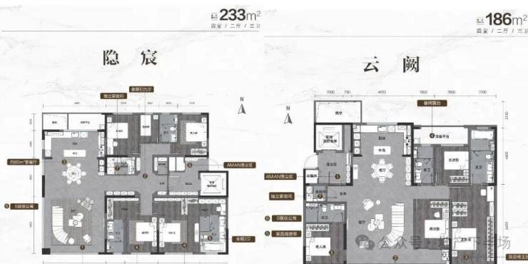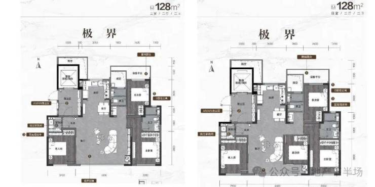 海信君安的首开户型包含舒适实用的建面约128平三/四室两厅两卫,轩敞开阔的建面约143平四室两厅两卫,以及极尽豪奢的建面约186平、建面约233平四室两厅三卫。