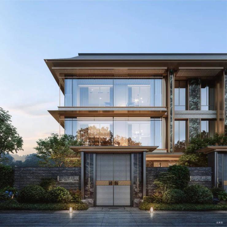 以现代技法的精简流畅,展现传统建筑的文化精髓。大面积玻璃局部点缀奢石,流露古朴隐奢的东方气韵,更彰显居者的广阔襟怀。
