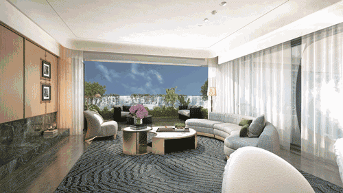 里子出色,面子更不含糊!外立面采用流线型外立面,弧形金属板+大面积玻璃工艺,约270°环幕视野将岛景与城市天际线尽收眼底。