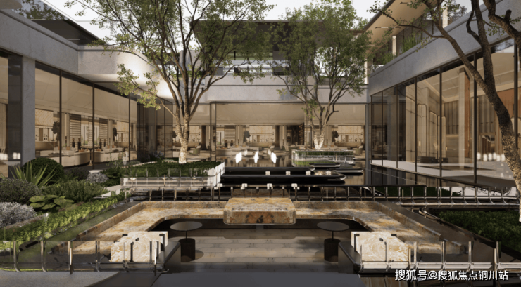 内部规划约1000㎡下沉式水景会所,将自然景观与社交空间融为一体,涵盖健身房、书吧、私宴厅等功能,为业主提供圈层专属领地。