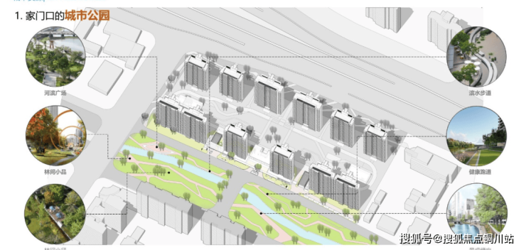 充分利用地块周边的城市景观资源,打造街区公园,实现“城在景中”的居住体验。