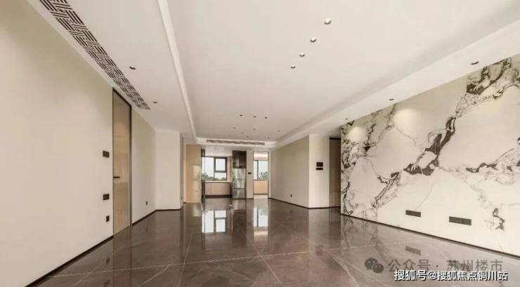 室内层高约3.1米,即使铺设地暖、安装吊顶,空间依然不显压抑。三开间朝南带来极佳采光面,约5.5米宽的阔绰客厅外接双开间景观阳台。