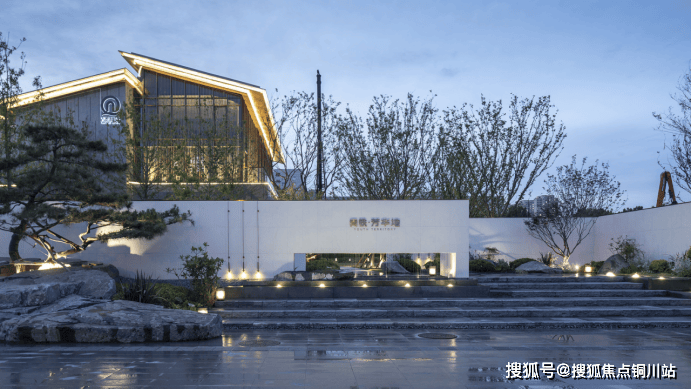 项目景观设计以“起承转合”的叙事手法,巧妙地将山石叠水、娜塔栎林与建筑融为一体;承袭东方园林的造园智慧,以当代手法演绎传统美学。从入口到内院,山石、流水、植物与建筑相映成趣,移步异景,宛如穿行于立体的山水画卷。层叠错落的山石与跌宕流水,谱写自然的乐章;乌桕林掩映下的迎宾景墙,以淙淙水声隔绝喧嚣,带来一场视觉与听觉的双重盛宴。