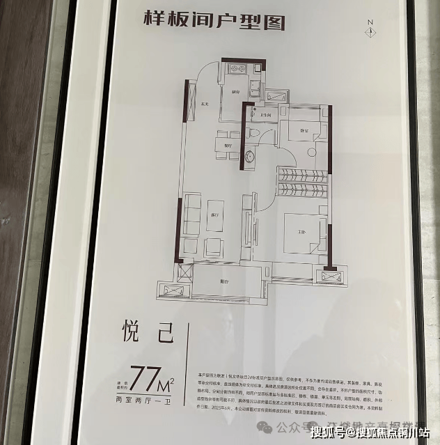 建面约77平两房,传统的连廊中间套小户型,麻雀虽小五脏俱全,刚需过渡还是可以的。