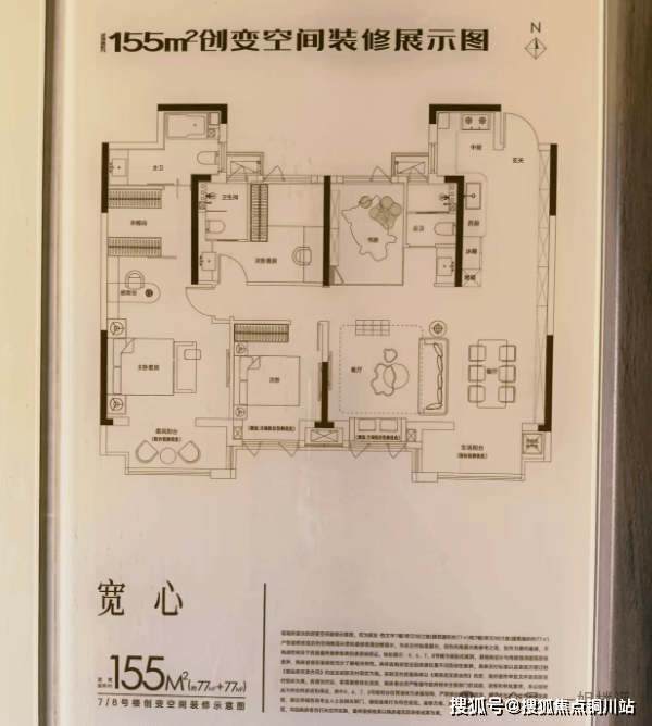 如果你是三代同堂,要更大面积的户型,那么两套小户型拼出来的建面约155平四房,顶层的总价不到80万;中高区楼层的总价也就90来万,门槛相当低了!