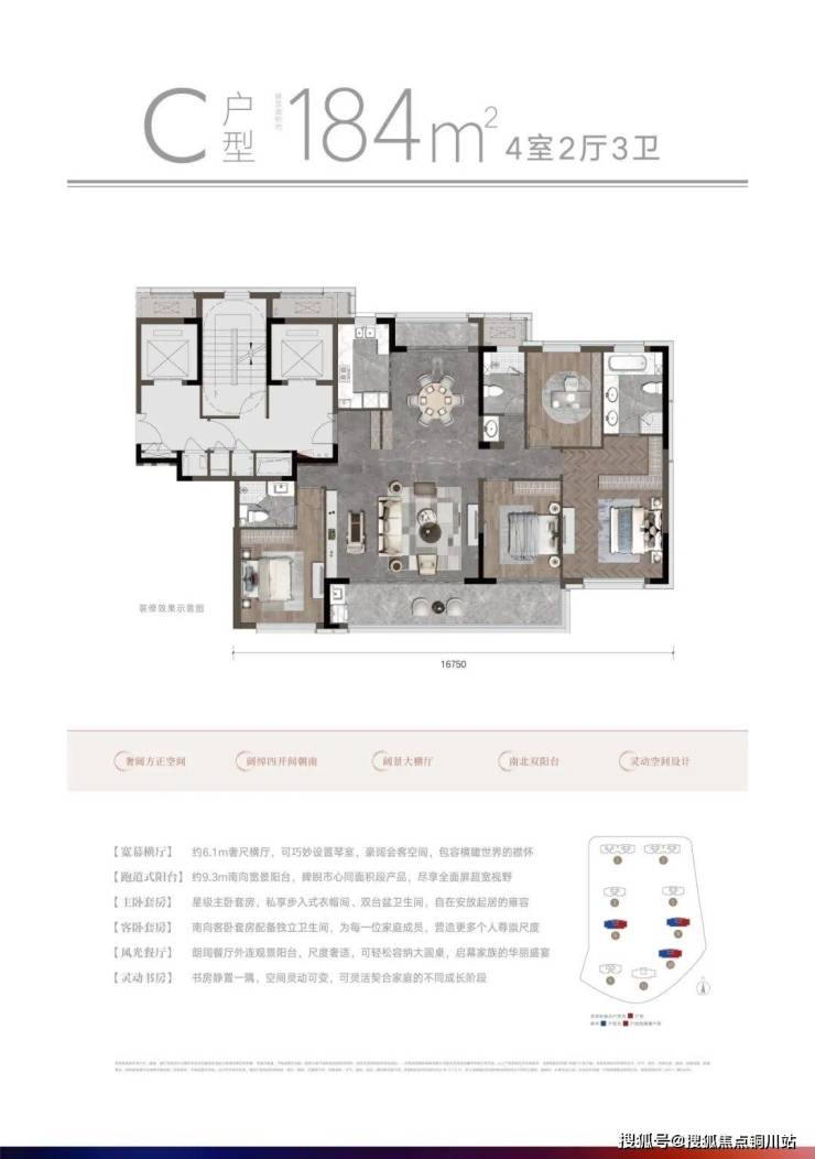 8.【纯粹大户型】为保证社区的纯粹性,只规划建筑面积约130-186㎡纯粹大户,南北通透、大面宽、短进深、大开间,买房当然要一步到位。