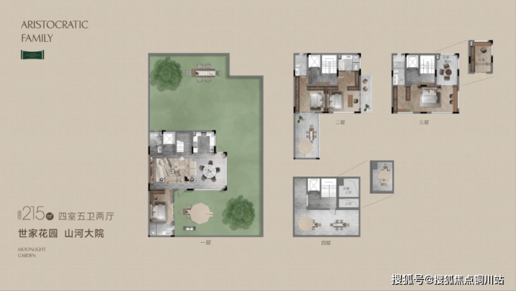项目精心规划了约192㎡、215㎡、266㎡三类合院产品,其中约192㎡与约215㎡为三层布局,约266㎡为双层设计。
