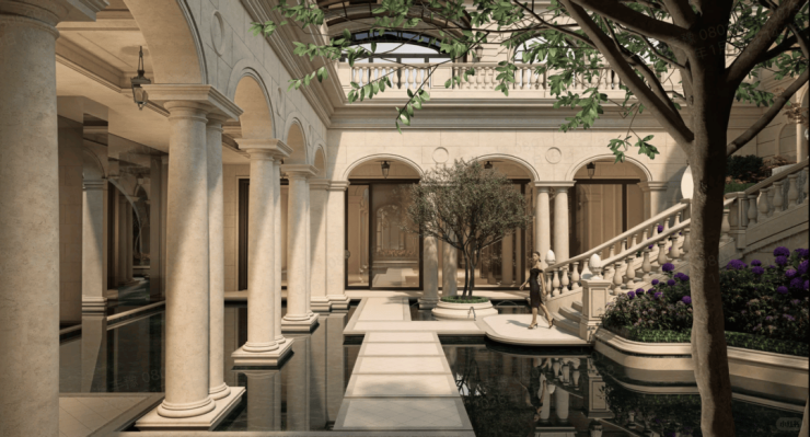 强烈的轴线精神是法式古典美学的灵魂。项目创造性地构建了“十字花轴”系统:由入口广场、归家大堂、中轴水院构成的“尊享仪式轴”,营造层层递进的归家礼序。