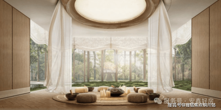项目自带有2500㎡的会所,约2100m²的下沉庭院,会所包含恒温泳池、健身房、瑜伽室、国医馆、茶室、棋牌室、私宴厅、花房、女王会客厅、中央车站等。