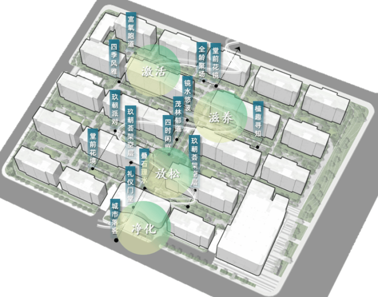 旭辉建管在产品打造时,希望从客户归家的那一刻起,就是完成一场自我情绪疗愈的景观洗礼:通过三重归家礼序、体验场景、活动空间、以及由架空层或会所构成的“玖朝荟”生活运营空间等,完成情绪“净化-滋养-激活-放松”的完整闭环。