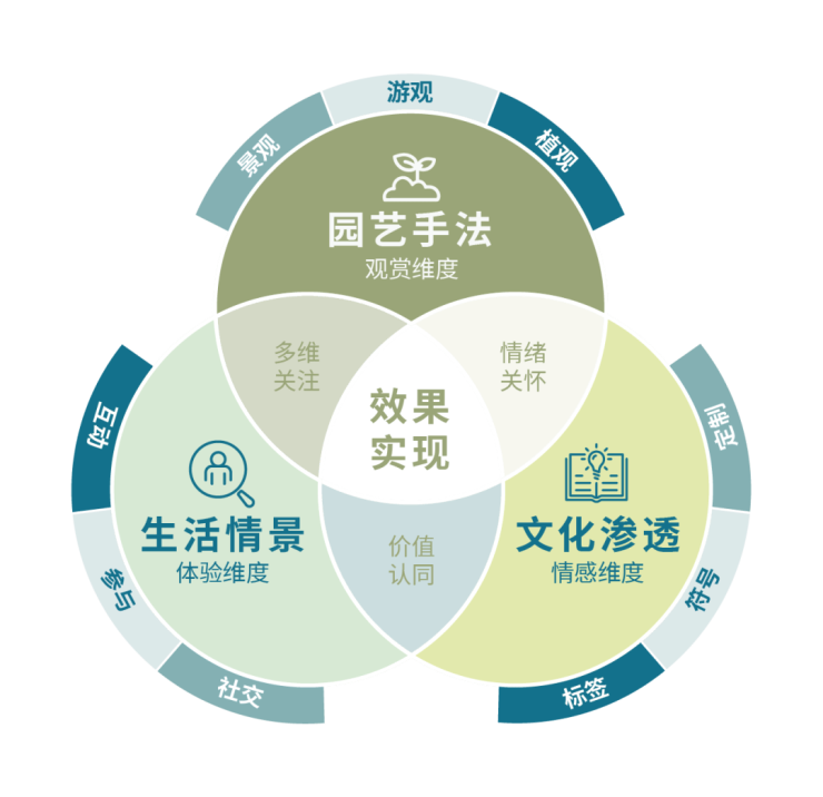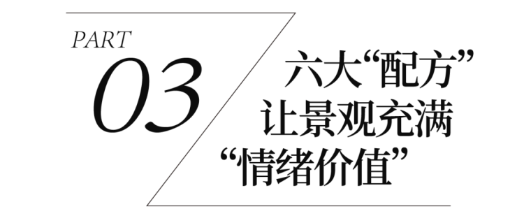我们认为,设计不能只关注效果本身,应该通过更多维的手法使客户在情绪端感受到关注、关怀以及强烈的价值认同感。因此,在景观上,我们会通过园艺手法运用、生活情景打造、在地文化渗透“三维一体”的设计手法,让景观呈现满足情绪共鸣。
