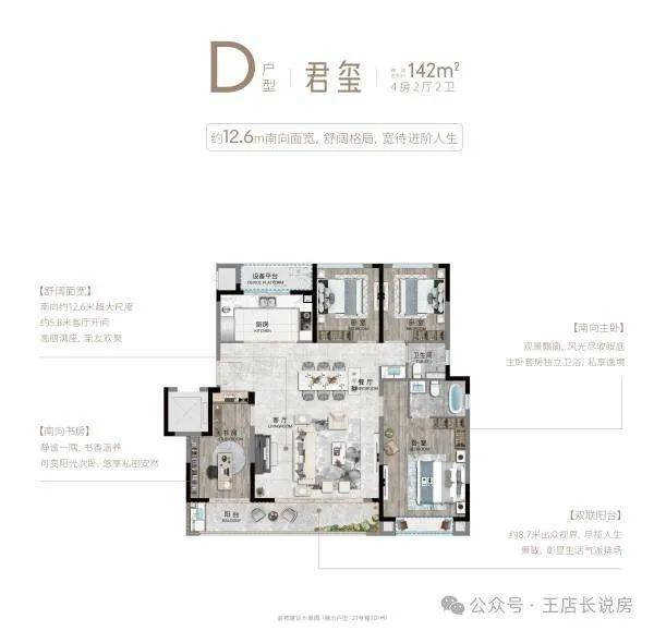 ◎约142㎡稀缺大四房 全盘仅50席|约97%高得房率|观景落地窗|全封包阳台