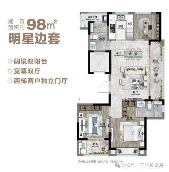 ◎约125㎡四叶草明星户型 约94%高得房率|全封包阔境双阳台|宽幕双厅