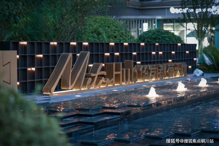 带有华发都荟天地LOGO的迎宾水景,在夜幕初上的时候,显得熠熠生辉,灵动非常。
