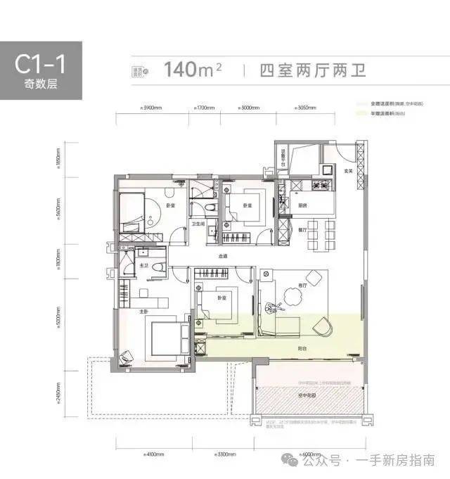 边户都有带转角的露台,中间户也都有空中花园的设计,而这些与第四代住宅的关键词“空中花园”“开放式露台”相吻合。