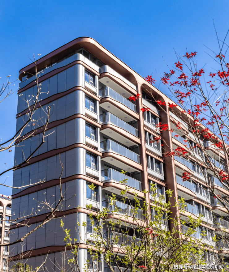 深玫瑰金色铝板线条的运用,为建筑增添了几分精致与奢华,却不显张扬。