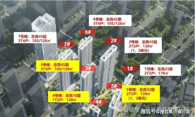 该项目规划为准四代,各楼栋户型分布、梯户比等相关资料都已对外,其中有4栋楼都是42-45层超高层。首推的3号楼为45层、1个单元、3梯4户,建面约105、128平;4号楼10层、1个单元、1梯2户、建面约128平;5号楼为32层、2个单元、2梯2户,建面约139平。
