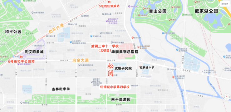 项目仅相隔 200 米的红钢城小学第四学校和武钢三中十一学校(北校区),是区域教育第一梯队,其中第十一中学在区域内省示范高中录取率位居榜首。