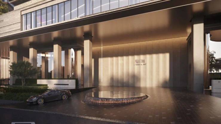 从大门处即是度假的开始。约80米的超级门楼,约11米的超高挑空门厅,大气磅礴,两侧礁石景墙围合,在阳光的照映下熠熠生辉,有种大溪地黑珍珠的高级质感。