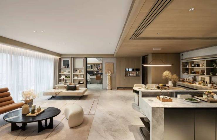 更惊艳的是建面约125平米的户型,每个空间都拥有足够阔绰的尺度,可以跟市面上很多140+的四代宅相媲美。