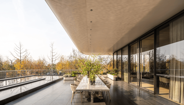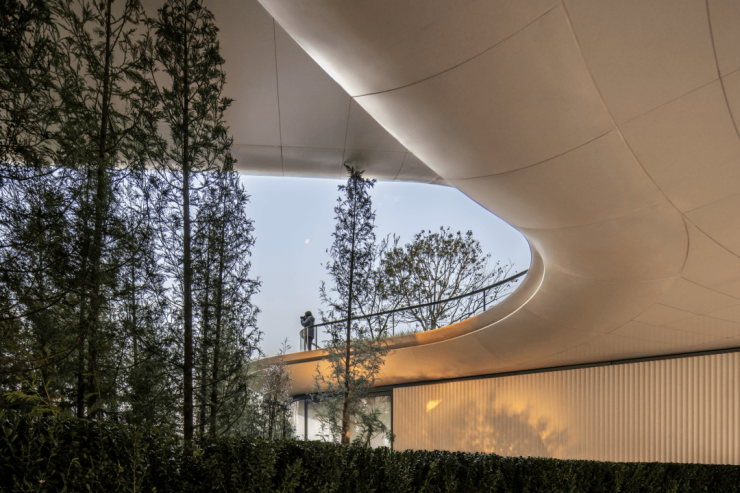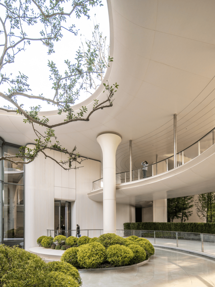 自然生境的营造在私密性与公共性之间建立平衡。柔性景观策略实现了大范围共享与小范围分享:城市层面共享视线上可达的景致,园区层面提供高品质的景观体验,既服务园区使用者,也惠及周边居民。