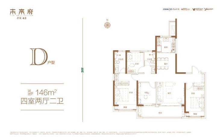 ©建面约146m²四室两厅两卫户型