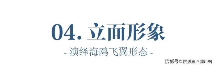 立面的设计创意是来自翱翔的海鸟展翅高飞的形象,通过设计抽取,形成简洁现代的整体造型,不落于俗套,不拘泥于舶来之下乘。轻盈飘逸塔冠,演绎海鸥飞翼形态,完美复刻了海鸥展翅的翩然姿态,整体风格将滨海建筑的独特气质展露无遗。