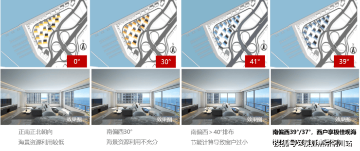 规划设计上,做到海景利用最大化,住宅地块笔直矗立的16栋住宅楼错缝排布,楼栋高度由沿海向内逐渐升高,层层递进的秩序感,勾勒出灵动优美的微笑曲线。