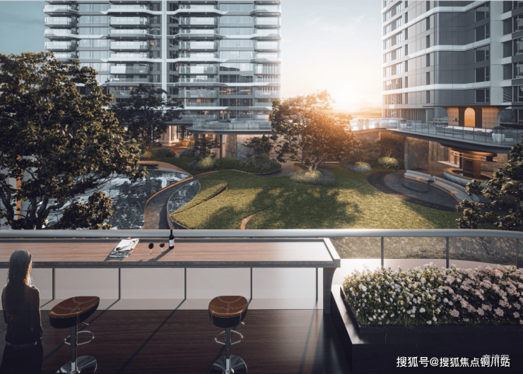 它对标纽约曼哈顿High Line公园生活,雕琢鬼斧神工般的浮岛公园,约450米空中跑道与约7000平方米双层绿化景观,营造个人与家庭生活的丰富场景;